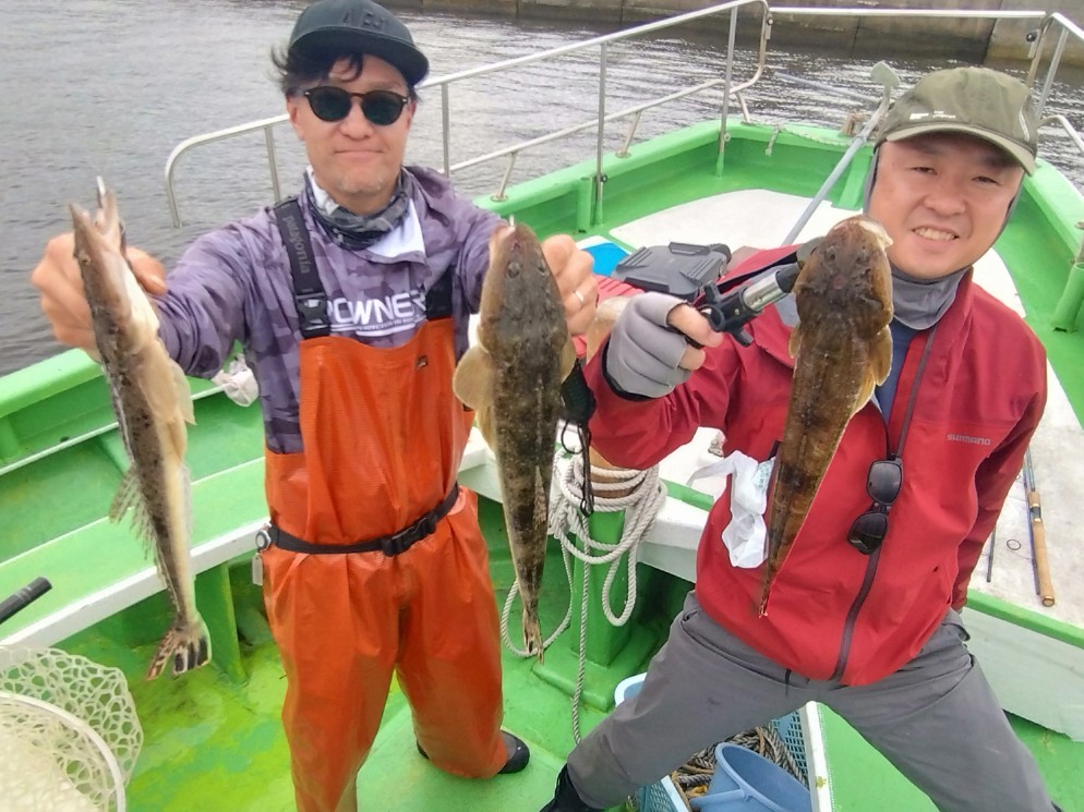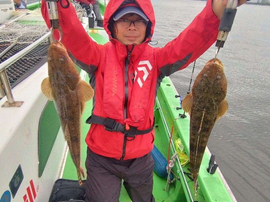 【マゴチ船】 マゴチ 大きさ 38~52㎝ 数 0~4匹 (船中17匹) 竿頭 港区 右田 ユウキさん 今日は海堡周辺からスタート。ポイントに到着すると上げ潮もピリッと流れており、上手く流れてポツポツと本命マゴチを船内に!ただ、その後はフグやイカなどのエサ取りが多めに・・。ウザいエサ取りを回避すべくポイントを変えましたが、エサ取りのいない海域はマゴチも薄いようでなかなかアタリも遠く・・。帰り際のポイントでようやく追加できましたが、後半は苦戦しました・・。