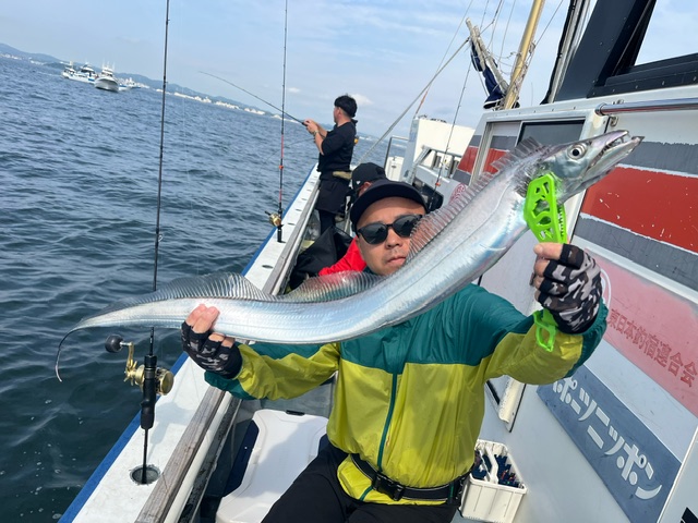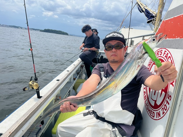 天気 くもり 水温20.8℃ うす濁り 【タチウオ船】 タチウオ 大きさ 70~115㎝ 数 0~11匹 竿頭 流山市 松本 歩さん 他1名 朝イチは海堡周辺で活性の高い群れに!短時間でしたがモーニングサービスな感じでバタバタっとHIT!ただ、その後は反応があってもなかなかアタリの遠い状態に。ジグでもワームでも苦戦気味・・。後半は西側のポイントを大捜索に。ようやく30m付近に反応が!バッチリ反応でしたがその割にはアタリは遠めでしたが、ポツポツと太めのタチウオ交じりで楽しめました!