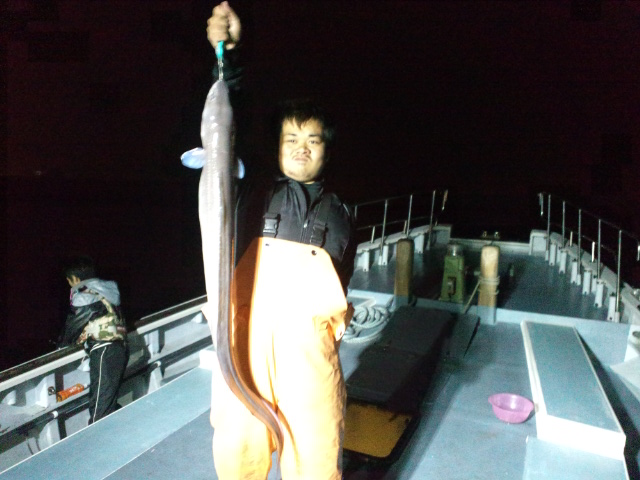 天気 雨→雲 水温 16.4℃ うす濁り 【限定クロアナゴ船】 クロアナゴ 大きさ 1.5~7.2㌔ 数 0~8匹 竿頭 板橋区 杉内 朋幸さん 今夜は雨の中の釣りになりました。下げ潮もピリッと通していたので、浅い方で狙い、開始早々はポツポツとスロースタート。入れ食いにはならないものの、ジグを常に動かして誘っている方は頻繁にアタリは出せたようでした。 久しぶりに7kgの大物も上がり、魚影の濃さはイヤっと言うほどいるみたいです!