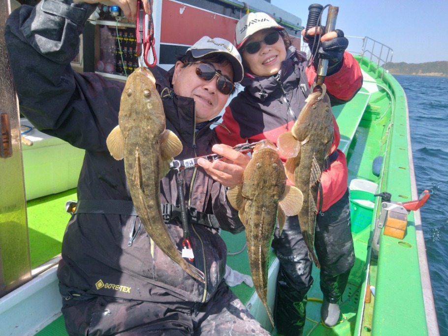 【マゴチ船】 マゴチ 大きさ 38~51㎝ 数 1~4匹 (船中13匹) 竿頭 足立区 熊倉 智さん 今日は北風も強めでしたので、海堡を回り込んで大貫沖からスタート。波は無いものの風は強く釣りづらい感じ・・。10mほどのポイントをじっくりと流し込んで、なんとかポツポツとアタリが!ただ、強風でなかなか竿先に集中できず、合わせのタイミングがつかめない様子でした・・。厳しい状況の中、なんとか皆さんGET!となりました!