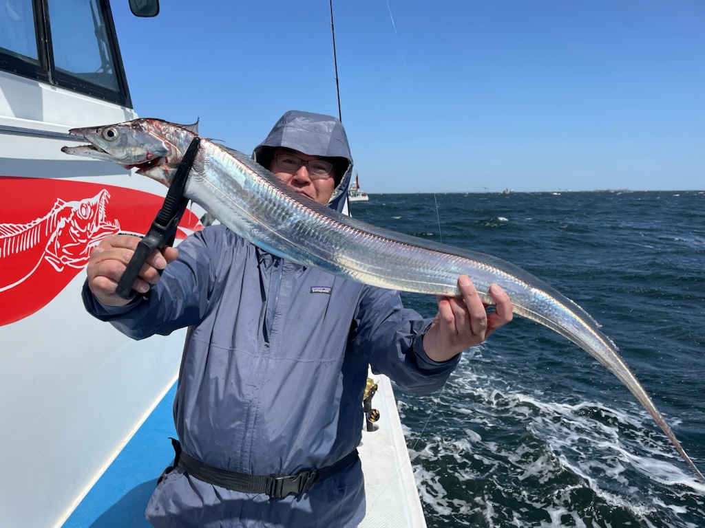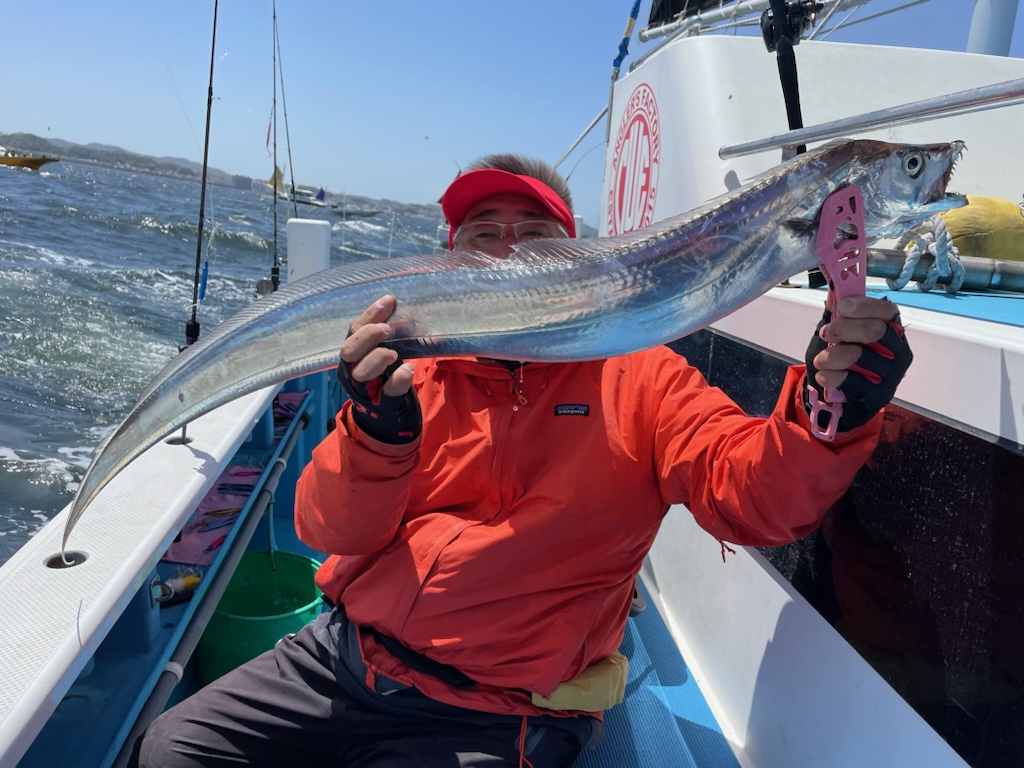 天気 晴れ 水温16.4℃ うす濁り 【タチウオ船】 タチウオ 大きさ 75~126㎝ 数 9~17匹 竿頭 越谷市 井上 修司さん 今日は走水沖からスタート。20~50mほどの中層に幅も30mほどある巨大な群れが!雰囲気はバッチリで見るからに活発な感じがしましたが、それほどの食い気はなく・・。フォール中心のアタリを取れないとちょっと難しい感じでした。手慣れた皆さんは順調にHIT!後半になるとサイズもUPしていき、126㎝のドラゴンも浮上! 今日は終日にわたり中層に群れが浮いている感じ!水温の上昇とともに今後もタナが肝になってくるので、ラインも色分けされたものや、カウンター付きのリールは必須となります!