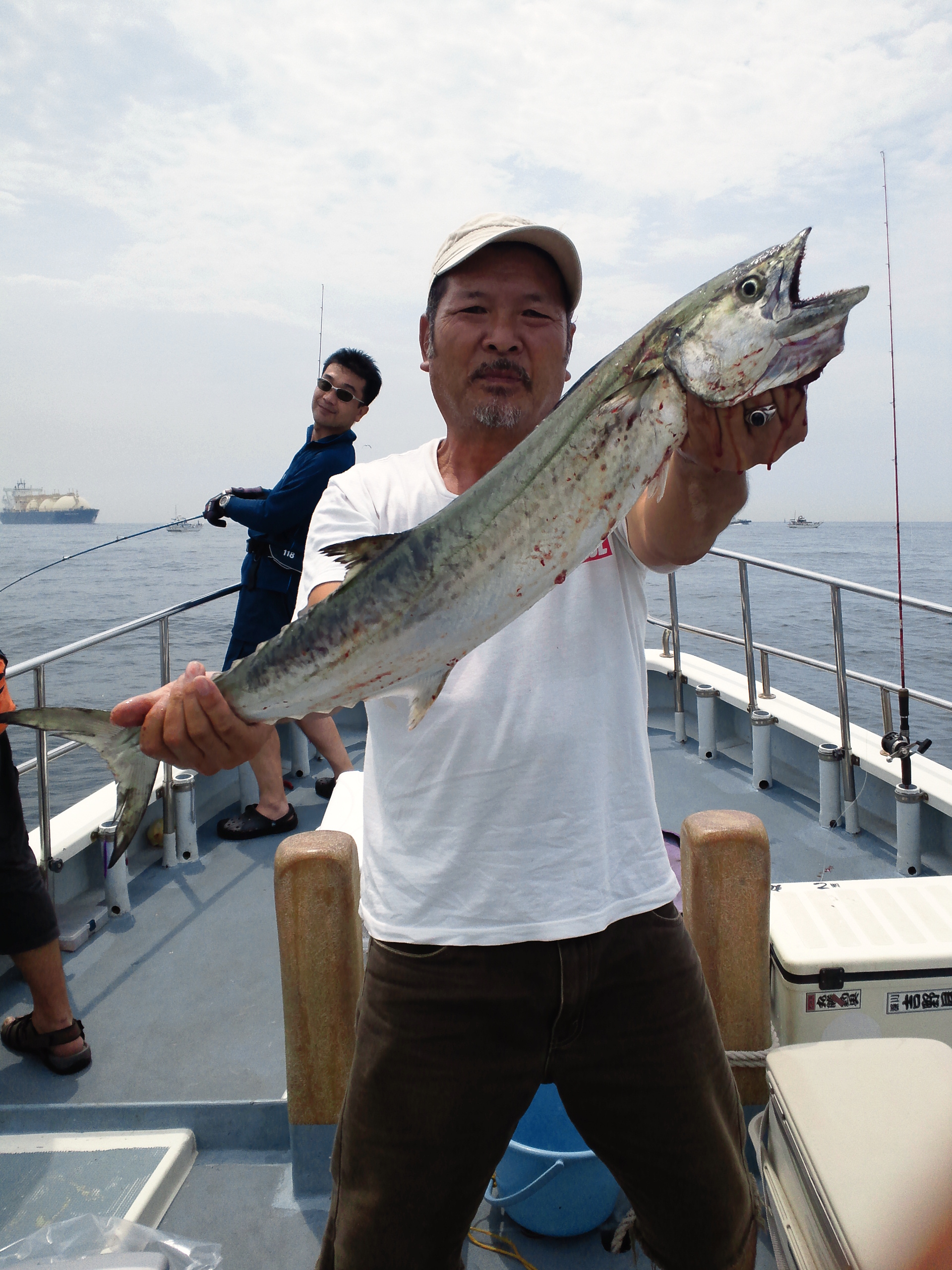 本日も大勢のお客様がいらっしゃり2隻でゆったりと出船しました。午前中の下げ潮も素直な流れでポツポツと好調にHITしました。時折、魚探にしっかり写る反応になると、入れ食い状態に!昼前まではポツポツ→入れ食いの繰り返しで、好調でした。13時を過ぎた頃になるとアタリも遠のいてきたので、イナダ狙いに変更。各ポイントを狙いましたが、ちょうど潮とまりの時間帯でしたので反応はあるものの、イナダにヤル気なし・・。何匹か見て終了になってしまいました・・。