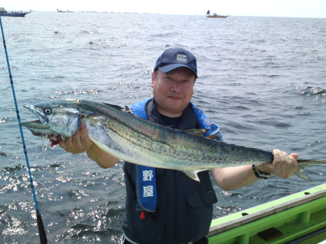 本日は1隻か2隻か微妙な人数。ゆったりと楽しんでいたきたく2隻出船。でもタチウオの活性はイマイチで、終日盛り上がる事無くポツポツ。13時には完全にアタリが止まり、イナダ狙いに変更。活発だった様でしたが、間に合わずこちらもポツポツ程度のアタリ具合でした。(写真のサワラは1mオーバーの大物でした!)