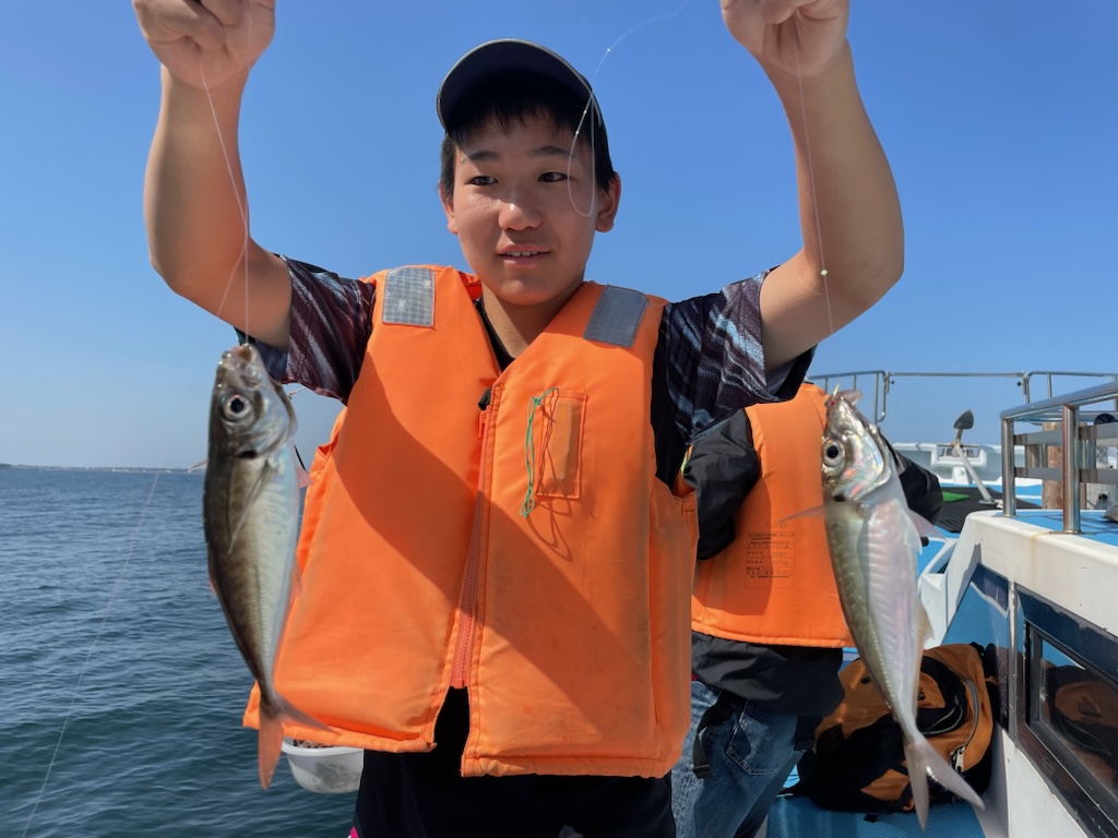 【マアジ船】 マアジ 大きさ 17~26㎝ 数 2~48匹 竿頭 いすみ市 江澤 崇さん マアジ船は2隻で出船しました。ともに木更津沖周辺でスタート。15号船は朝からポツポツと順調も、21号船はなかなかハマれず・・。でしたが、後半に活発な群れに遭遇!バタバタっと追加できました!