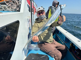 明日5日も7時よりタチウオ船・マゴチ船・マアジ船に。14時半より夕まづめアジ船。17時よりカサゴ船に出船致します! 午後から出船の、夕まづめアジ船とカサゴ船はまだまだ空きがございます! 明日も晴れてナギ予報!皆様のご乗船をお待ちしております!