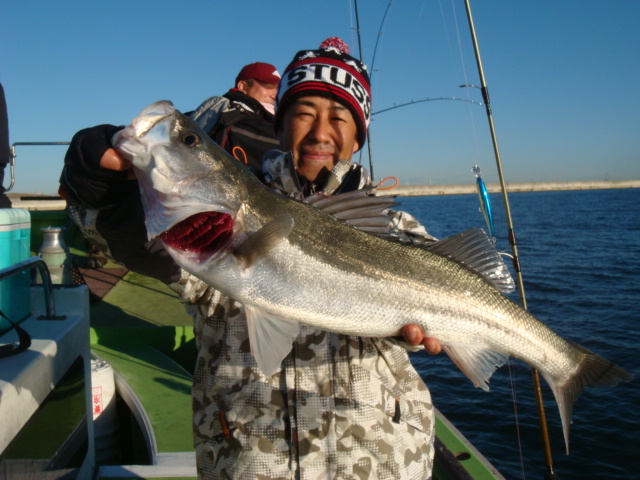 こちらも年末の食い渋りの影響で、何処から狙っていこうか迷いながら出船しましたが、近場で小規模ながら鳥山が!鳥山の下を旋回するともりもりになった反応が!ジグをおろすと入れ食い状態でHIT!30~40cmのセイゴも多く交じりましたが、フッコクラスも飛び出し好調な滑り出し!鳥山が立ったら移動しまたまた活発な群れに遭遇!また入れ食いの繰り返し!セイゴは避けたかったですが、いくらポイントをかわしてもウヨウヨと湧き出てくるようでしたので、避けることができませんでした。セイゴ級がかかったらペンチなどを使い手で触らないようにしてリリースしましょう!