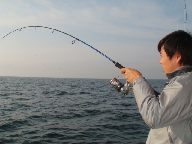 本日は朝から活発な群れに遭遇!いつものように80mのポイントで海底から20mほど反応が立ち上がっており、ジギングでもエサ釣りでも好調にアタリが出せました!ここ最近のパターンでいくと、活発な時間帯は短時間で終了してしまうのですが、今日は帰り際まで良いアタリが続いてくれました!