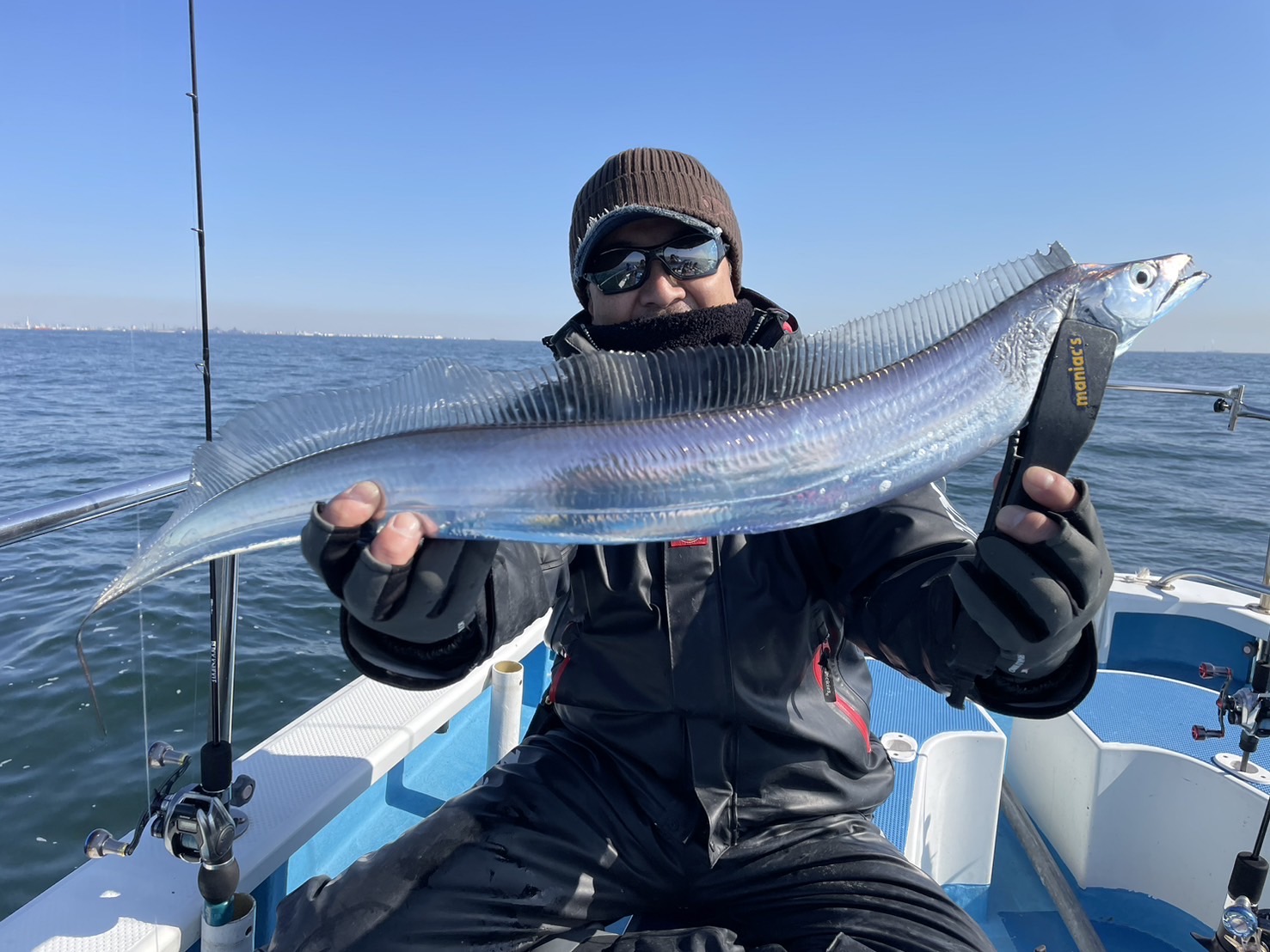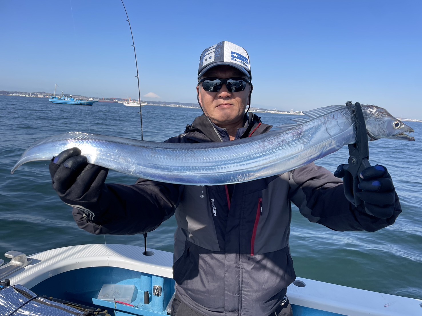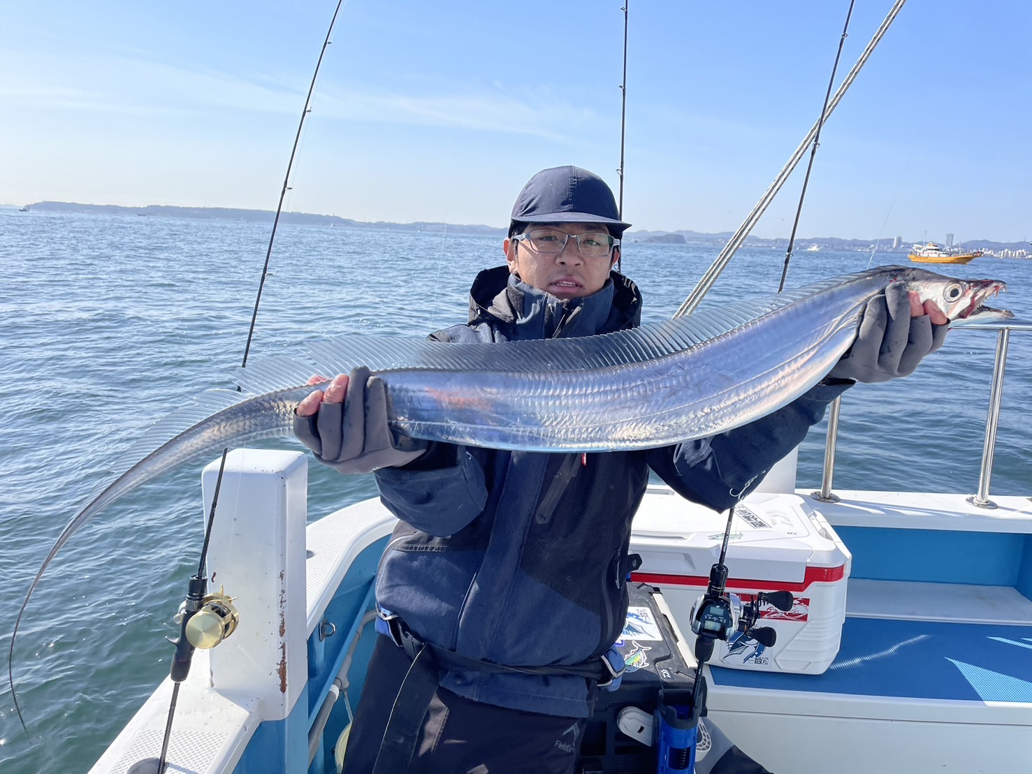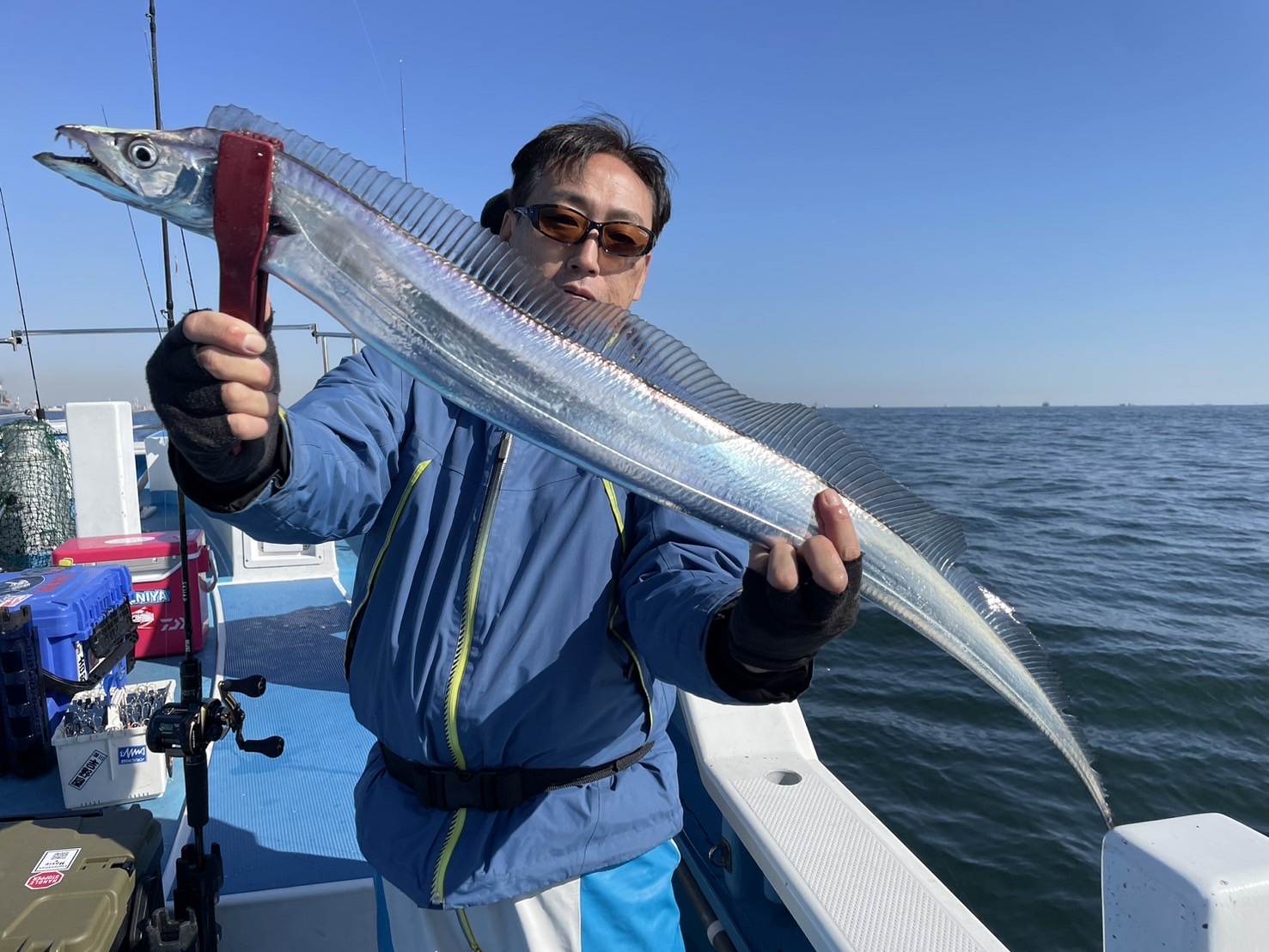 天気 晴れ 水温11.8℃ うす濁り 【タチウオ船】 タチウオ 大きさ 75~127㎝ 数 0~15匹 竿頭 松戸市 高木 祥行さん 今日も横須賀沖よりスタート!朝イチは少し反応に高さもありポツポツとアタリました!そのうち下げ潮カッ飛びはじめ反応も低くなってしまいアタリのほうも遠くなってしまいました。お昼頃ようやく速い潮も落ち着きはじめるとまたポツポツとアタリありました。今日は久しぶりにドラゴンもゲット!まだサイズも狙えそうですよ!メタルジグ120グラム使用しました。