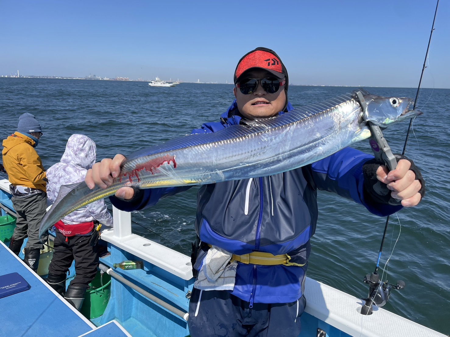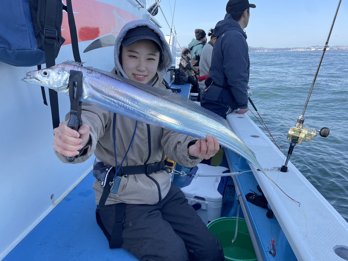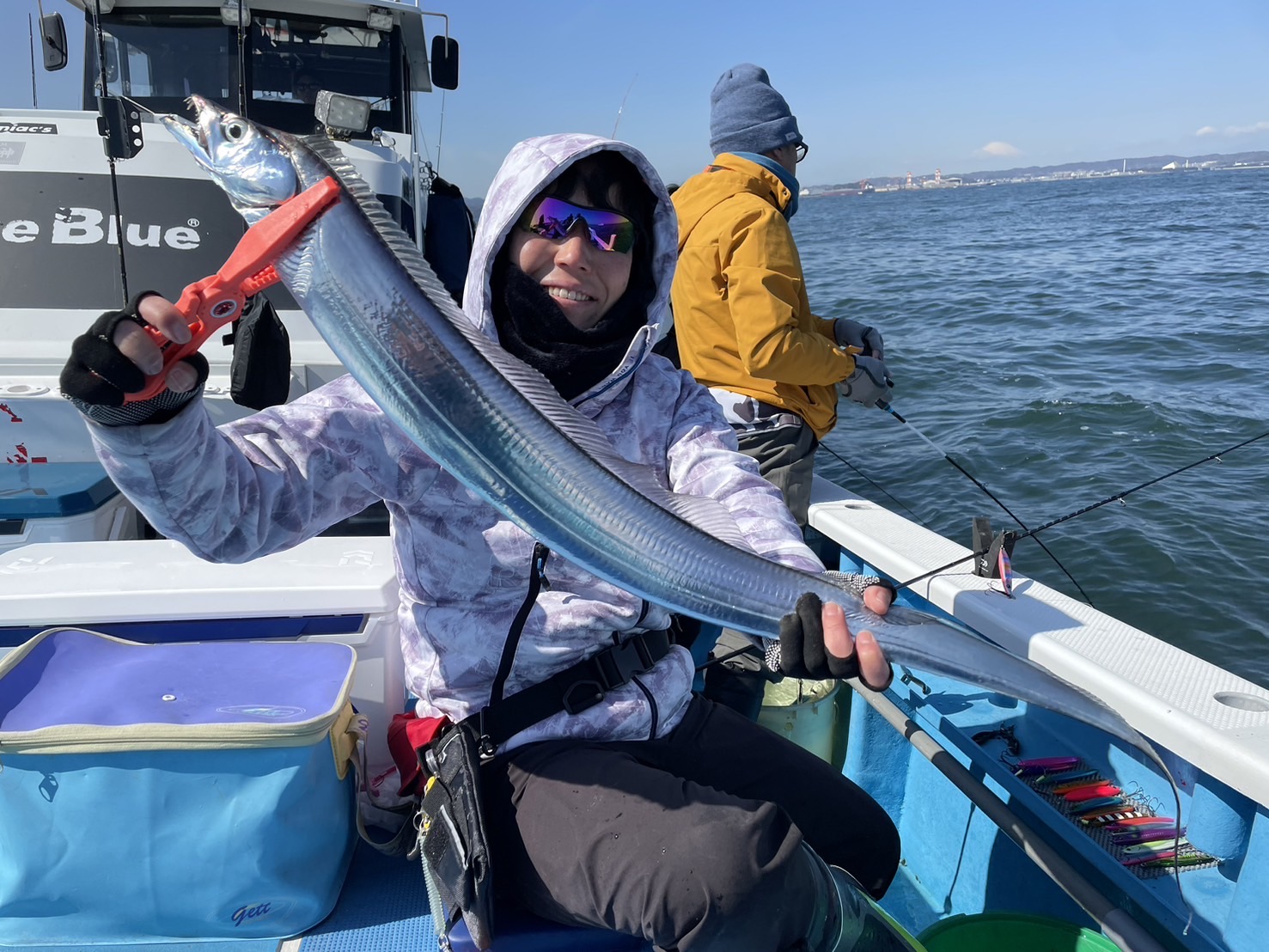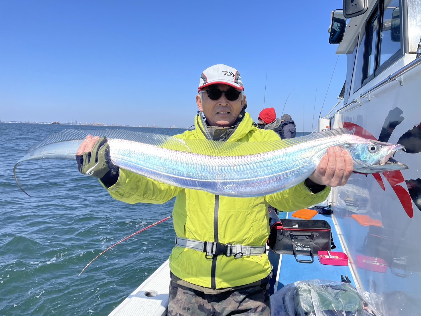 天気 晴れ 水温11.8℃ うす濁り 【タチウオ船】 タチウオ 大きさ 75~127㎝ 数 0~15匹 竿頭 松戸市 高木 祥行さん 今日も横須賀沖よりスタート!朝イチは少し反応に高さもありポツポツとアタリました!そのうち下げ潮カッ飛びはじめ反応も低くなってしまいアタリのほうも遠くなってしまいました。お昼頃ようやく速い潮も落ち着きはじめるとまたポツポツとアタリありました。今日は久しぶりにドラゴンもゲット!まだサイズも狙えそうですよ!メタルジグ120グラム使用しました。