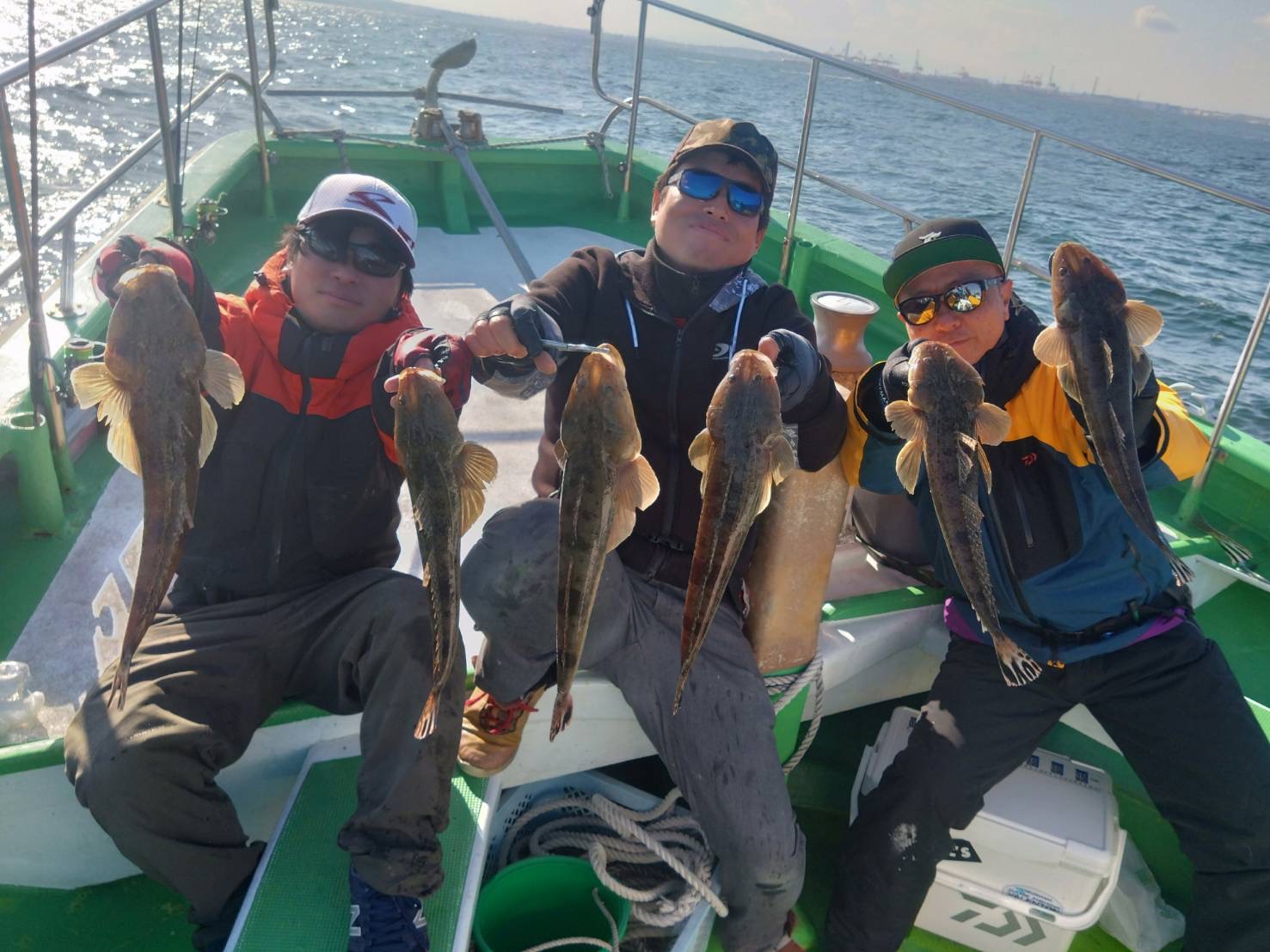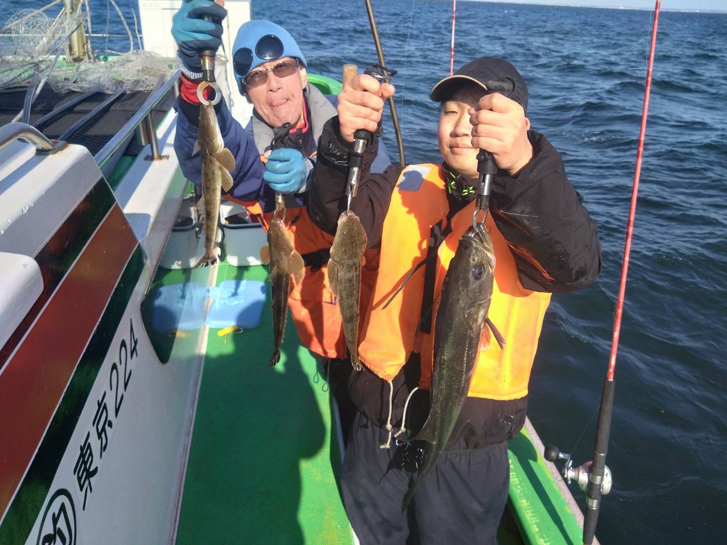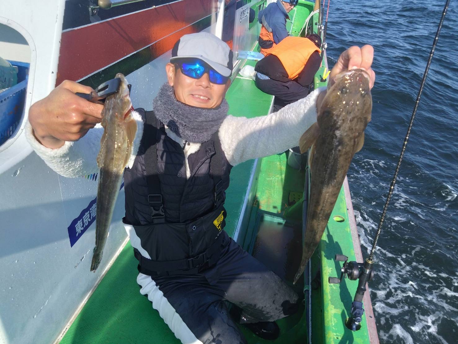 【マゴチ船】 マゴチ 大きさ 42~50㎝ 数 1~6匹 (船中23匹) 他、スズキ 竿頭 さいたま市 一ノ瀬 創太さん 中央区 藤井 信行さん、2名 今日は木更津〜富津方面をメインに狙いました。15〜30m前後の水深を手探りで幅広く狙い、どのポイントでも型は見れましたが単発のアタリで地道に拾い釣りでした。貸し竿の方々も何度かアタリは出せなんとか全員安打で帰港出来ました!