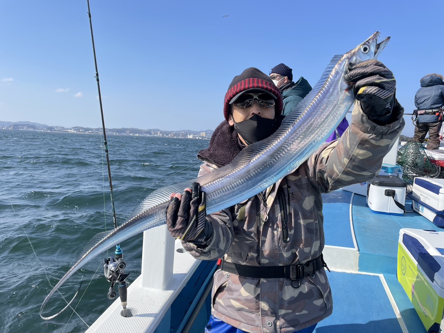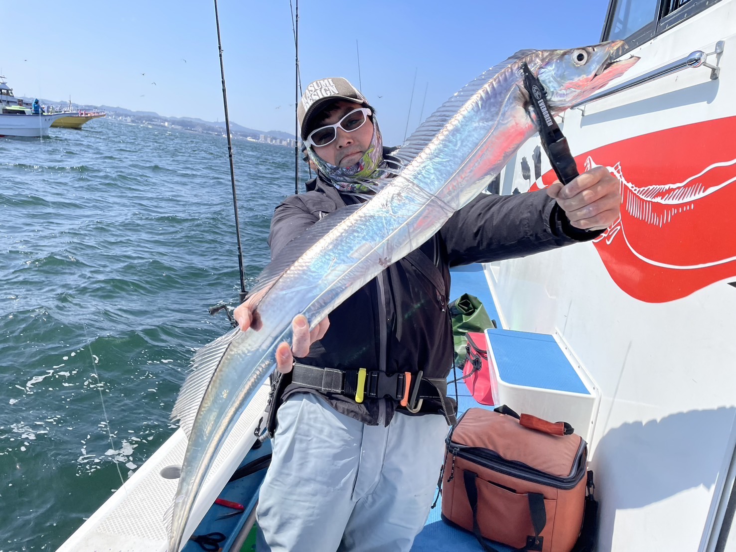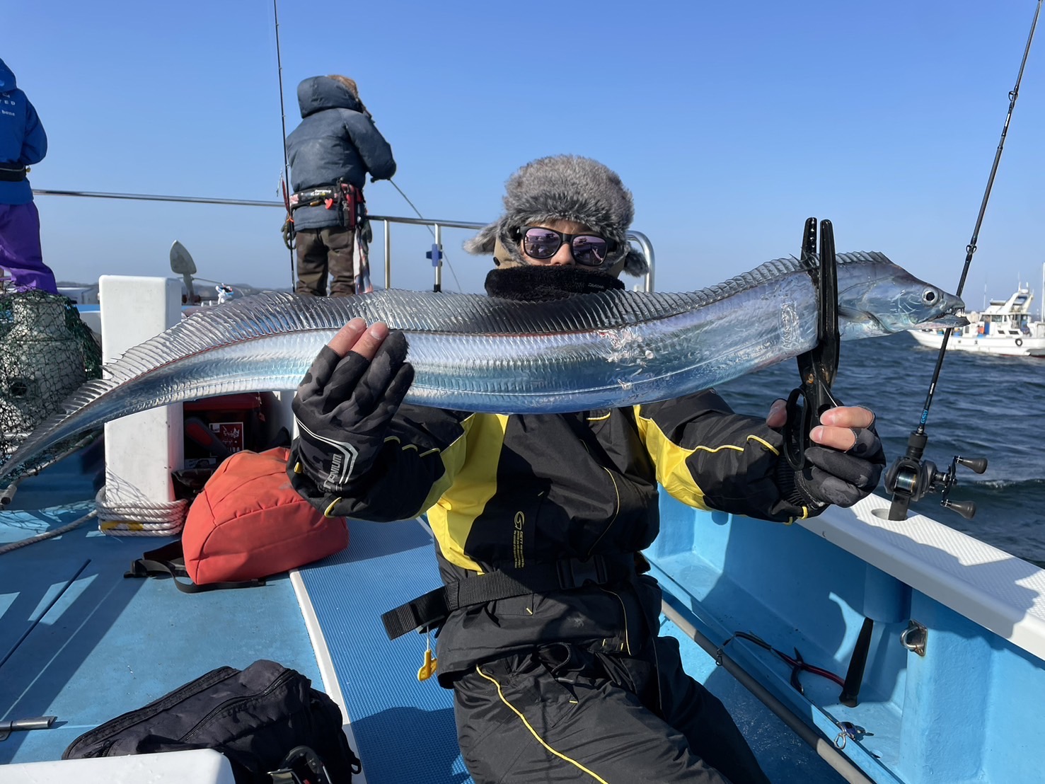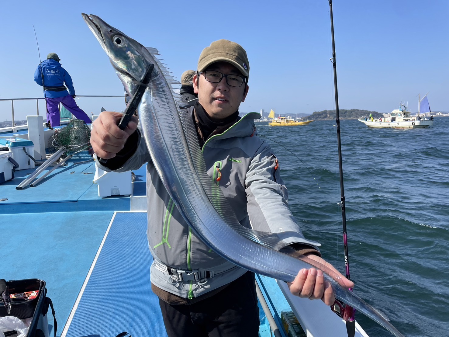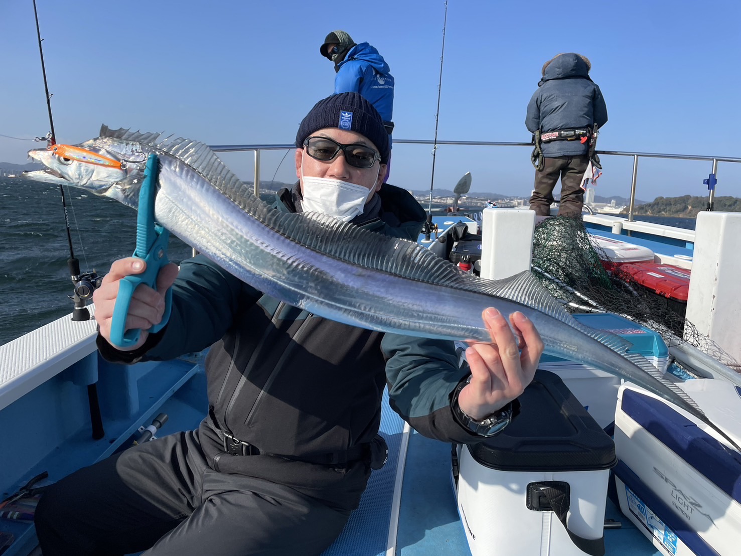 天気 晴れ 水温11.7℃ うす濁り 【タチウオ船】 タチウオ 大きさ 70~123㎝ 数 1~15匹 竿頭 江戸川区 西畑 竜也さん 今日は猿島沖からスタート。反応は広範囲にあり、海底から5〜8メートルほど立ち上がって出ていて雰囲気はバツグン!アタリのほうはテクニカルですが、その分ヒットする魚は良型多く、いつも元気にヒットしてくる小さい魚はほとんどいなかったです。終日ポツポツとアタリありました!メタルジグ100〜120グラム使用。各種各色幅広くお持ちください。