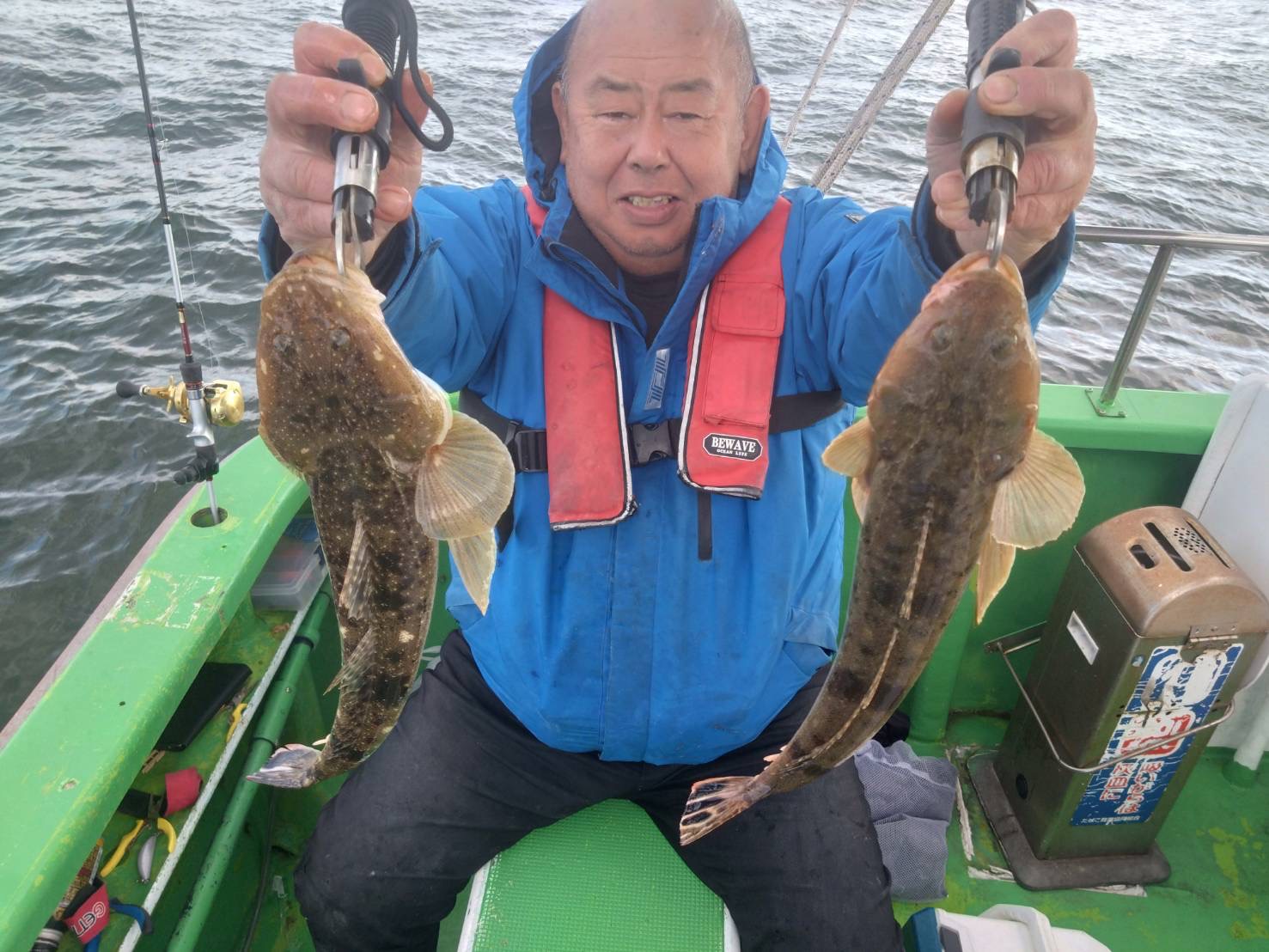 【マゴチ船】 マゴチ 大きさ 42~47㎝ 数 1~4匹 (船中24匹) 竿頭 足立区 小川 清司さん 今日は木更津から転々とポイントをまわりましたが、1時間ほど型見れず。富津方面にこちらは単発であたりはありましたが、続かずにあちこち拾い釣りでした。後半は少し深めのポイントに行ってみると立て続けに5本釣れたので、流れに任せ大流しするとポツーンポツーンと間があきながら1本づつ順調に船内に入りました。終わってみればなんとか全員マゴチを拝む事が出来ました!
