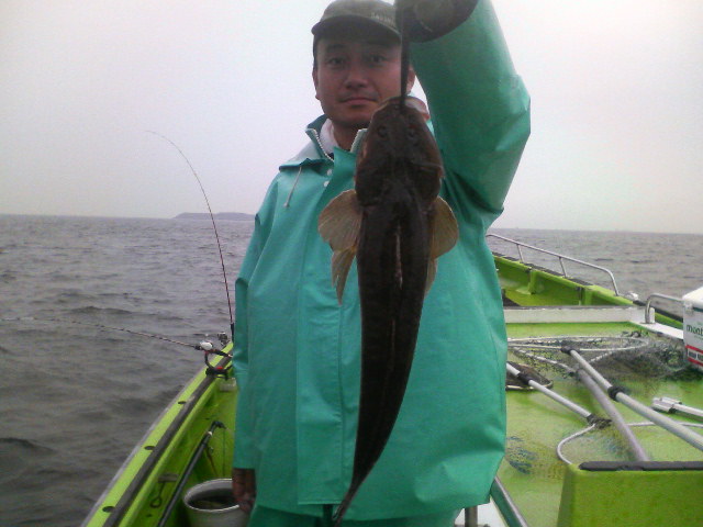 今日は出船時は曇りでしたが、大貫沖に到着後すぐに雨がパラパラと・・。天気はイマイチも、今日もアタリは多めに出せました!昨日連発した10mラインをパラシュートアンカーで大流し。1流し4・5回はアタリが出せました。でも、今日はアタリが何だか変??一気にひったくるようなアタリが出たと思ったら、流れもあるのに1分近くモゾモゾして、小型がエサをかじっているだけだと思ったら、50cm級のマゴチだったりと。セオリーに反するアタリが多く、皆さん苦戦気味。バラシも多かったですが、アタリが出せての釣りですので悔しいながらも楽しめました!今日は6名で狙い船中10匹GET。残念ながらお一人0匹の方が出てしまいましたが、アタリはあったので良しとしましょう。