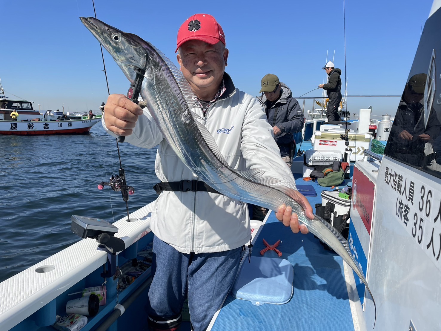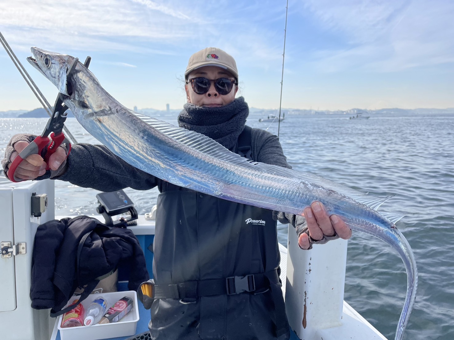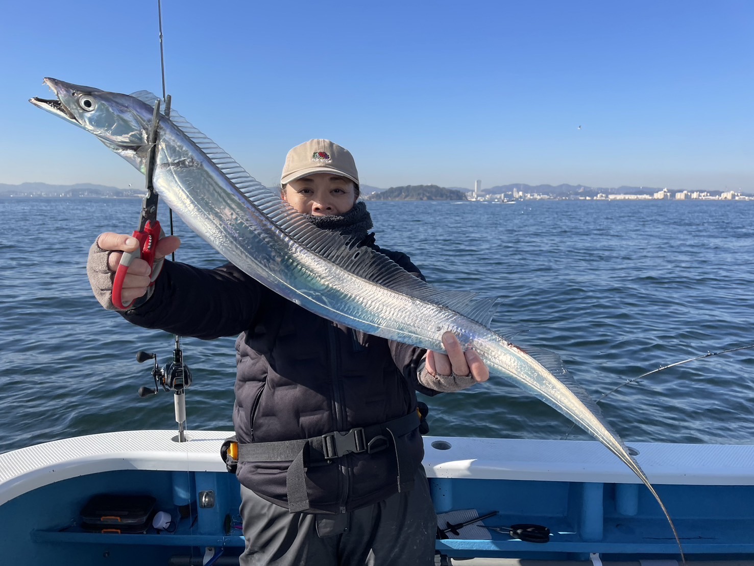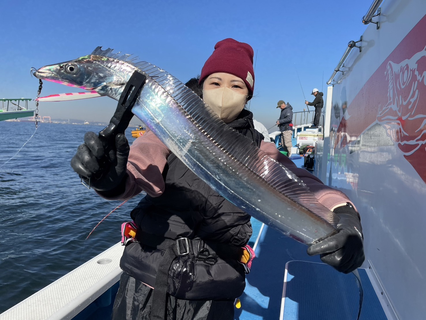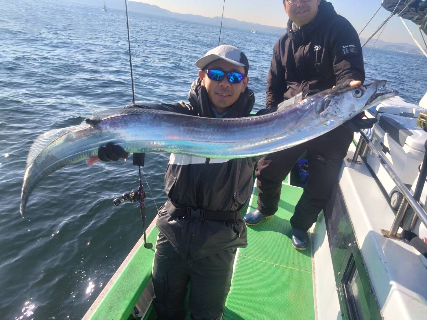 天気 晴れ 水温12.0℃ うす濁り 【タチウオ船】 タチウオ 大きさ 75~132㎝ 数 3~47匹 竿頭 板橋区 小久保 和貴さん 今日も横須賀沖からスタート!朝イチはモーニングサービス間に合い、落とせばアタリがある状態。2流しは絶好調なアタリっぷり!久しぶりにドラゴンも出現し盛り上がりました。中だるみがあり下げ潮がくるとまた活性アップ!帰りまで続いてくれました。アタリ多いせいか、ラインカット多発でしたね。明日は午前中のうちは風も持ちそうです。チャレンジャーのみなさまお待ちしてます。