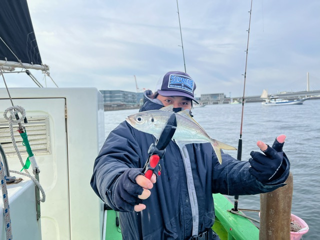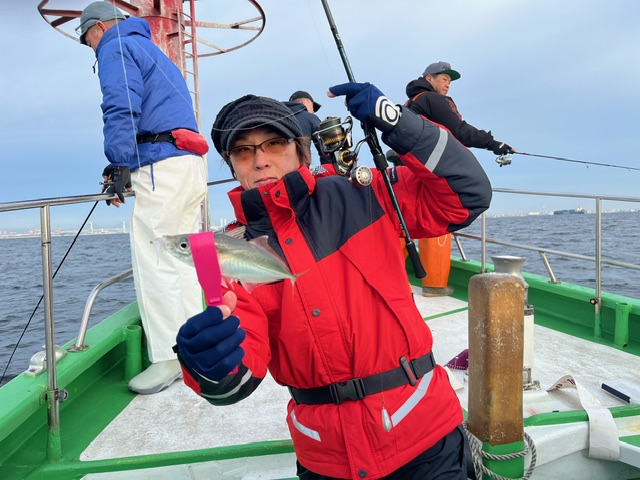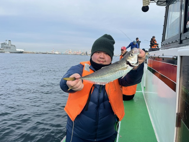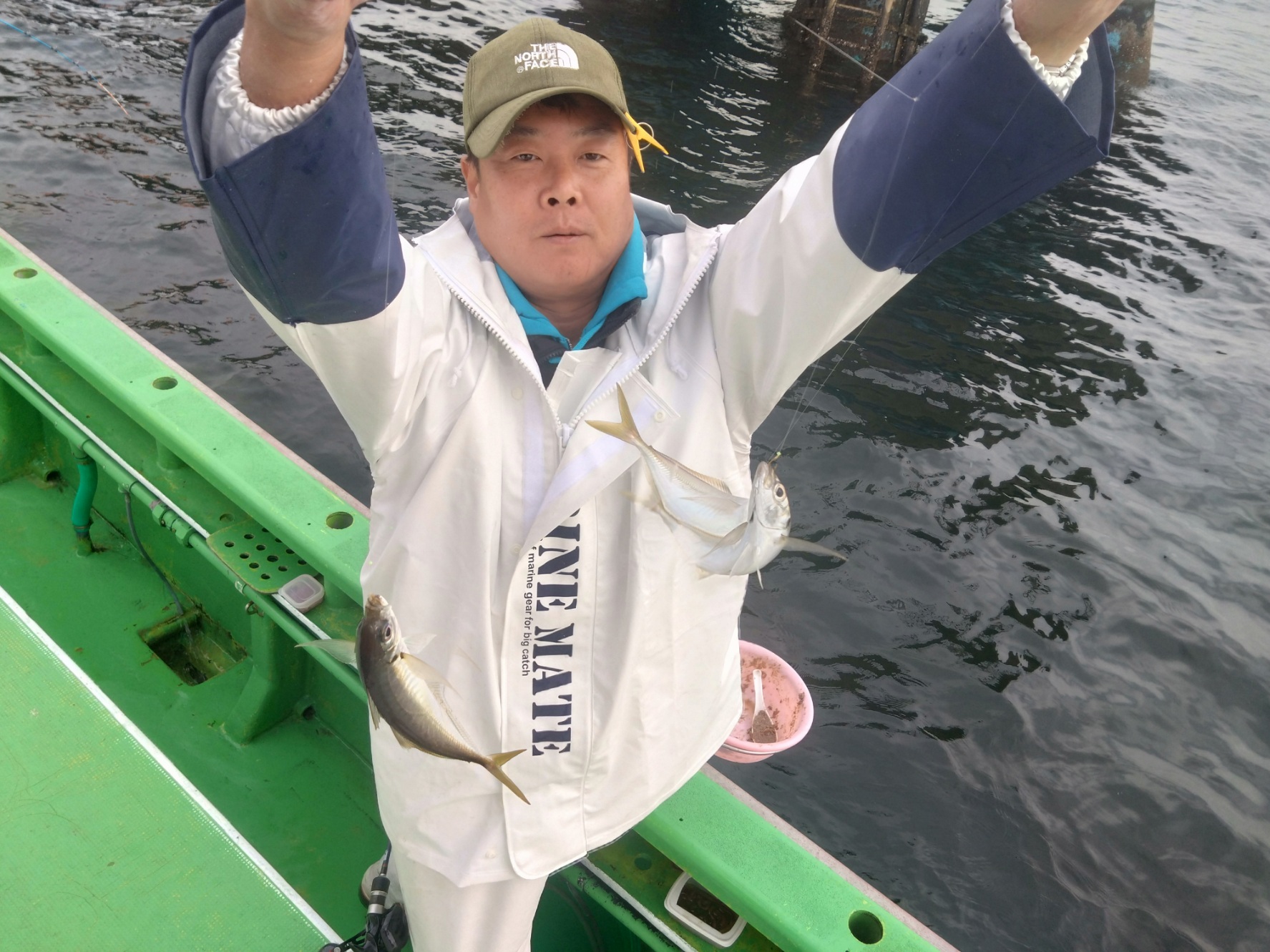 【マアジ船】 マアジ 大きさ 15~43㎝ 数 7~99匹 竿頭 草加市 浅川 忠義さん マアジ船も2隻で出船。木更津沖と扇島沖に分かれてスタート。木更津沖の方は相変わらず好調な食いっぷりで、20~25cm級を主体に終日活発な食いっぷり!扇島沖の方はストラクチャーや根回りを転々とし、小ぶり交じりも時折30cm級もHITしたりと小~大サイズをポツポツと!最大は43cmも浮上!ただ、どちらもバチコンの方はイマイチアタリが遠いようでした・・。