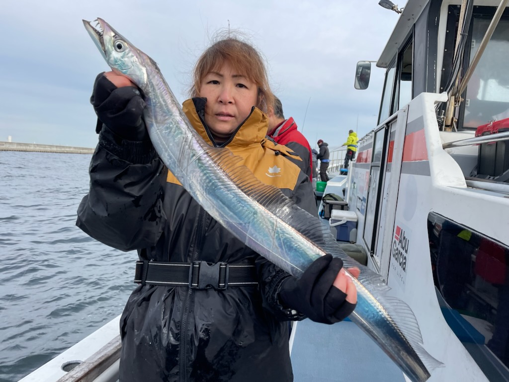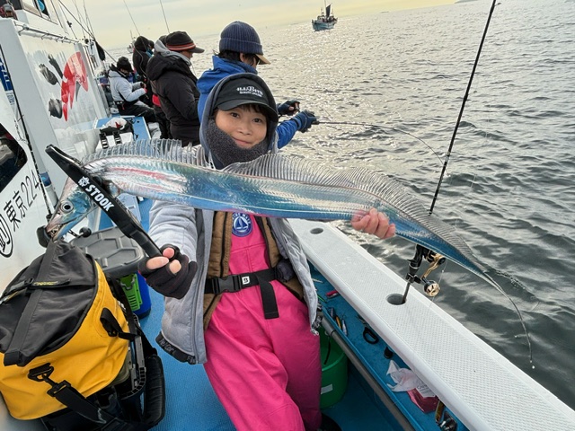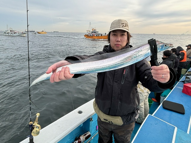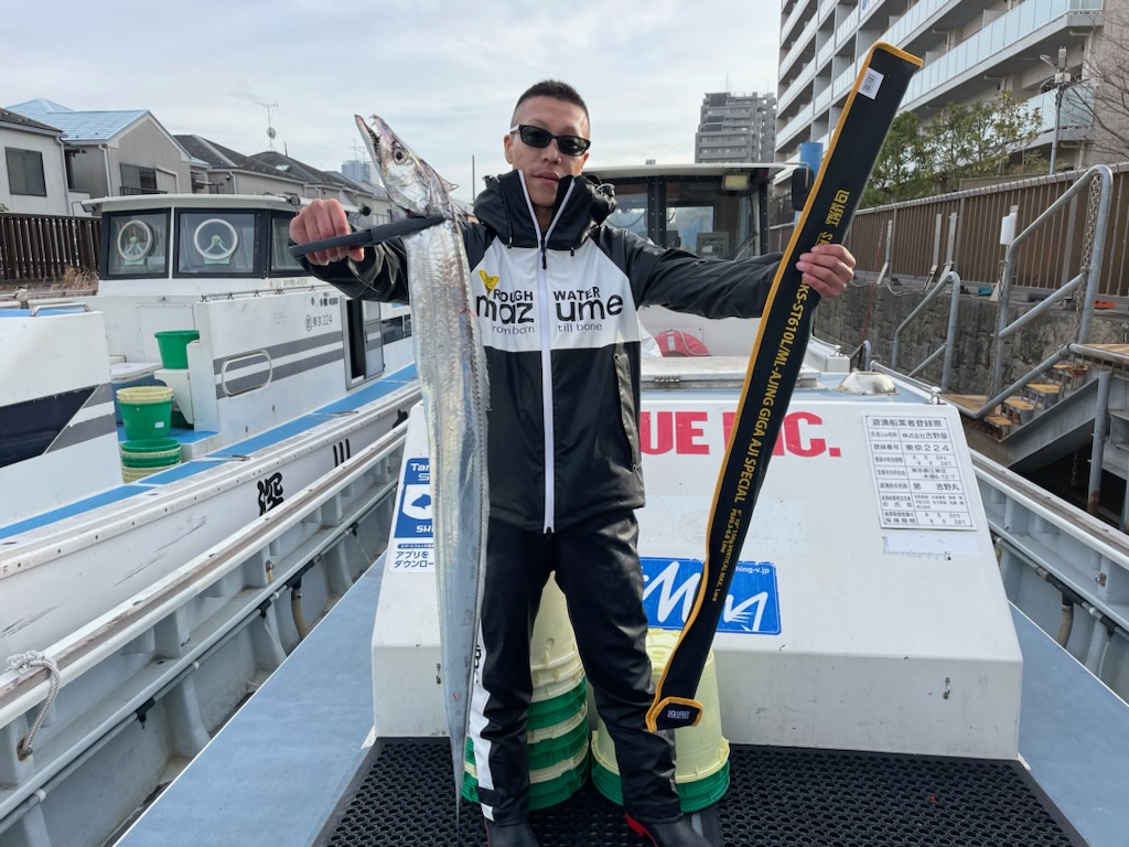 天気 雲→晴 水温12.5℃ うす濁り 【タチウオ船】 タチウオ 大きさ 80~124㎝ 数 0~9匹 竿頭 足立区 益田 亮二さん タチウオ船は2隻で出船しました。ともに本牧沖から開始。反応は広範囲に出ており雰囲気はバッチリ!アタリの方はいつもの感じでしたが、何かの拍子でバタバタっと連発する場面もありました。昼頃になるとアタリも出せなくなってきたので、湾奥のポイントを捜索に。30mラインで細切れ反応をあて変えポツポツと追加。今年初の湾奥ドラゴンも浮上してくれました!
