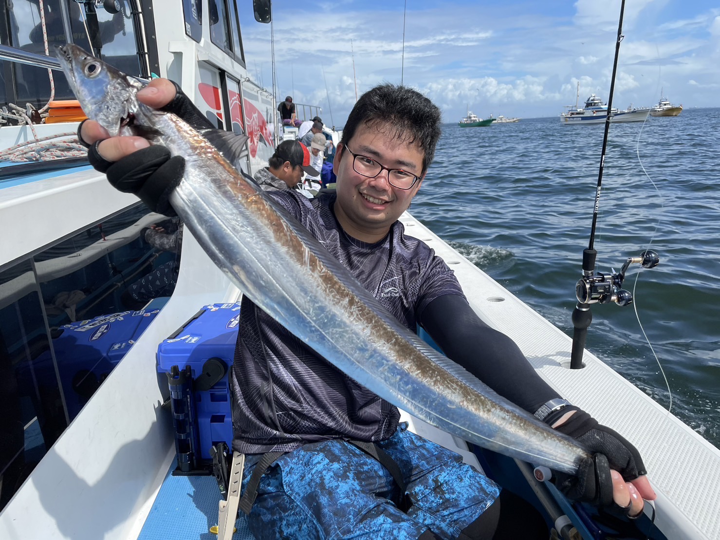 天気 晴れ 水温29.0℃ うす濁り 【タチウオ船】 タチウオ 大きさ 65~122㎝ 数 3~50匹 竿頭 草加市 井上 綱大さん 今日も猿島沖からスタート!反応は広範囲で入れハナからバタバタと好調なアタリっぷり!。サイズもまじりで朝のうちは良型率高し!メーターオーバー多数でドラゴンもゲット出来ました。時折ゲリラ豪雨にうたれながらもアタリはポツポツと帰りまで続いてくれました。