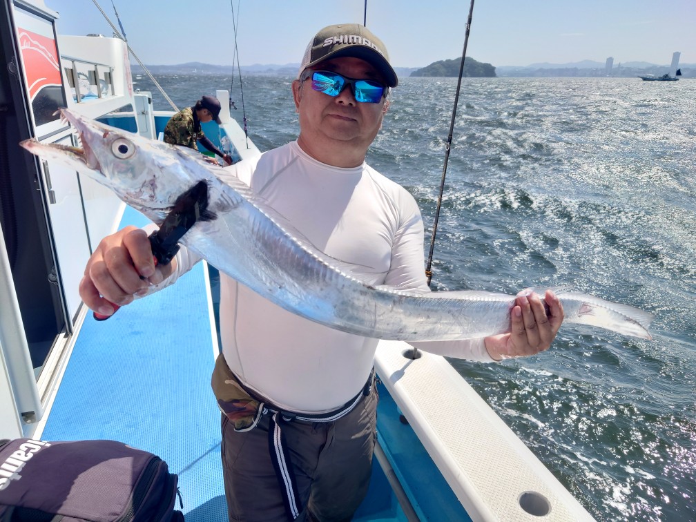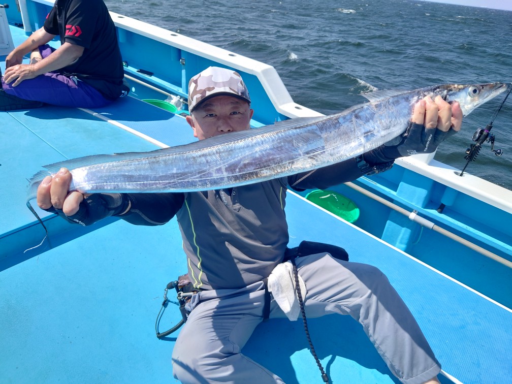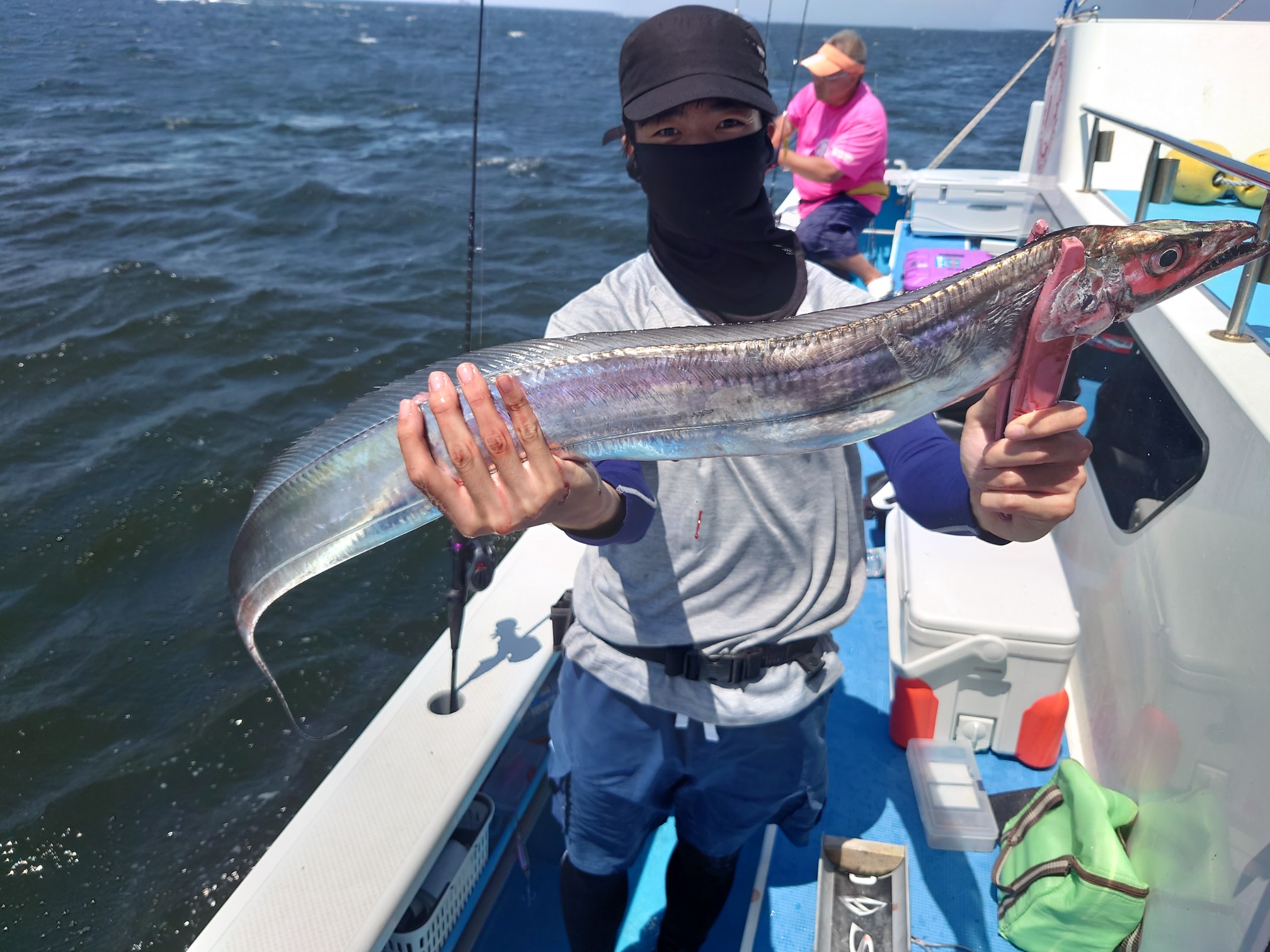 今日は猿島沖からスタート。朝イチは活性も低めでたまにポツリとHITする程度のアタリっぷりでしたが、上げ潮に変わると徐々に活性もUP!夏タチサイズ主体も、時折メーター前後の良型もポツポツとHIT!初心者の方も好調にかけていらっしゃいました!帰り際になるとドラゴンも含み、更に良型率もUPし、今日は数もサイズも申し分ない一日になりました!!