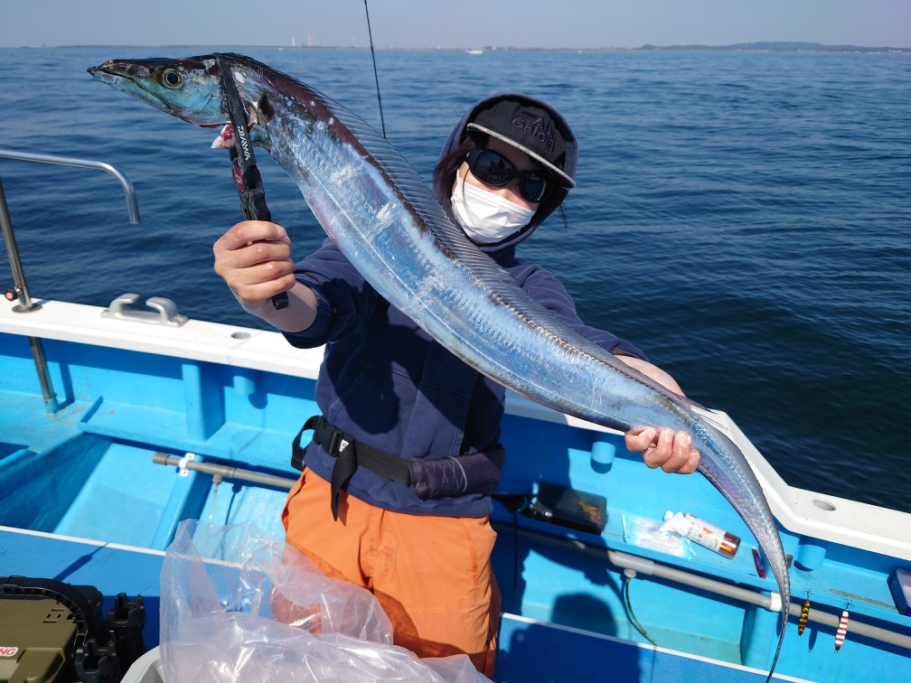 【タチウオ船】 タチウオ 大きさ 65~108㎝ 数 4~32匹 竿頭 江東区 小浜 健司さん 昨日は汚れが出ていて、判別しにくかった反応でしたが、今日はそれほど目立たなく走水沖からスタート。釣りを開始するタイミングで久里浜沖にいい群れがあるとの僚船からの連絡で一気に南下。80m付近にしっかりとした反応があり、乗っていられればポツポツと好調にHIT!お昼頃までアタリは続き、後半は観音崎沖に戻りじっくりと狙うことに!今度は45mほどに反応も浮かんでおり、メーターUPの良型もちらほらと!昨日ご乗船の皆さん、ごめんなさい!汚れの悪夢から解放されました!!!