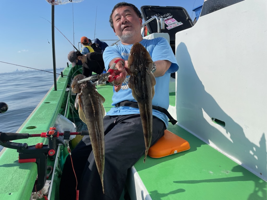 【マゴチ船】 マゴチ 大きさ 42~62㎝ 数 0~2匹(船中15匹) 他、ヒラメ・スズキ 竿頭 足立区 谷脇 俊徳さん 他4名 朝イチは木更津沖からスタート。下げ潮もピリッと流れており、大流しをしてアタリもポツポツ順調に!ただ、今日はバラシやすっぽ抜けも多々・・。思いのほかGETならずでした・・。後半になると風も流れも止まってきて、アタリの出し辛い感じに・・。皆さんもまったりモードになり、アタリも少なくなってしまいました・・。アタリの出し辛い時こそ、マメなタナ取りです!あきらめずに頑張った方はアタリに報われます!!