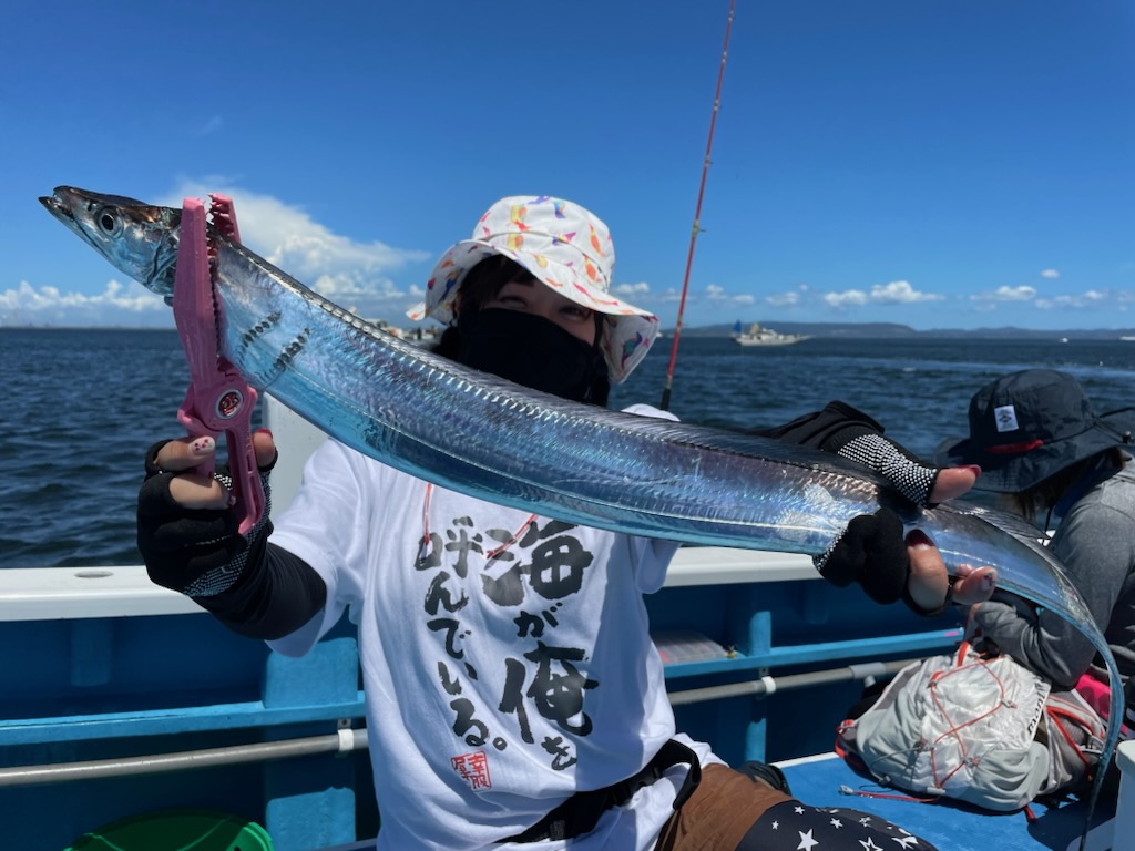 天気 晴れ 水温23.2℃ うす濁り 【タチウオ船】 タチウオ 大きさ 65~121㎝ 数 0~32匹 竿頭 船橋市 龍 秀明さん タチウオ船は2隻で出船しました。ともに猿島沖からスタート。反応もバッチリと広範囲に出ており、夏タチサイズ主体ながら活発な食いっぷりに!午前中は皆さん活発なアタリを楽しんでいただき、後半はサイズUPを狙いに横須賀沖に。こちらは細切れ反応が点在するだけで、アタリっぷりはイマイチな感じも上がってくればメーター前後の良型も多めで、久しぶりに121cmのドラゴンも浮上しました!