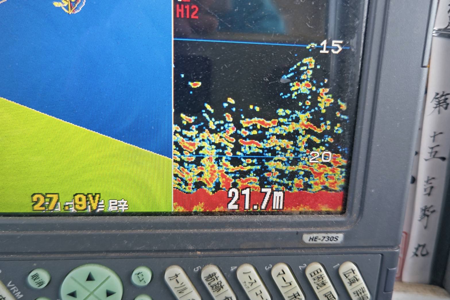 今日は観音崎沖からスタート。朝イチは細切れ気味の反応で型を見るのがやっとな感じ・・。ただ、じっくりと狙っていると徐々に反応もまとまっていきしっかりとした反応に!僚船はポツポツHITしているとの事でしたが、こちらはなかなかアタリが出せず・・。かなりテクニカルなアタリっぷりの様でフォールのアタリを取れないと蚊帳の外な感じでした・・。