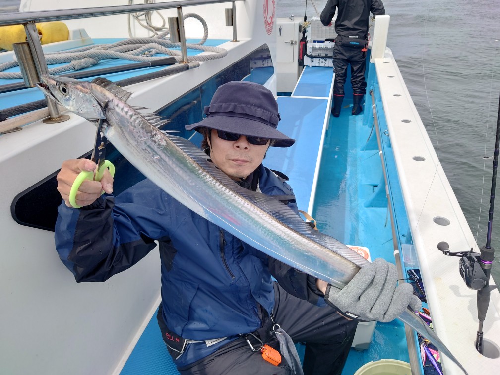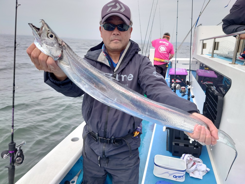 朝イチは久里浜沖からスタート。昨日までは反応もしっかりと出ていた様ですが、今日はなかなか見当たらず・・。観音崎沖にいた僚船が反応に遭遇できたとの事で合流。40m付近に反応がありスタート。小ぶりのタチウオ主体も、時折メーター前後の良型もHIT!タナも浅いときは30m。深いと70mと行ったり来たりしましたが、反応にじっくりとのっていられ、手慣れた方々は好調にHITさせていらっしゃいました!タナを把握できない方は残念でしたが、ラインの色分けをじっくりと見分けましょう!ジグは浅いときは80gほどでも大丈夫!80~150gとお持ちください!
