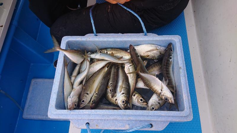 【マアジ船】 マアジ 大きさ 16~26㎝ 数 9~51匹 竿頭 江東区 宮内 啓悟さん アジ船は木更津沖からスタート。転々と狙うもどこも活性低め・・。ちょっとづつ貯めていって、後半になるとようやく活性UP!手返し勝負で数を伸ばしていきました!
