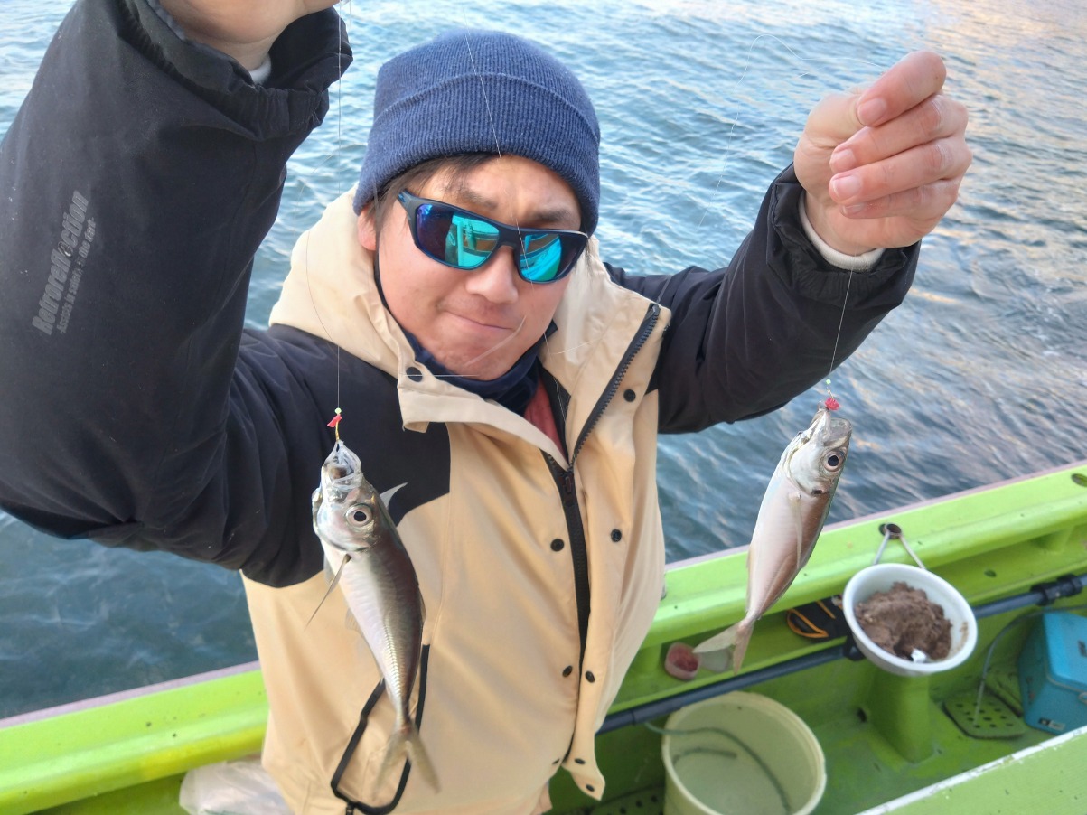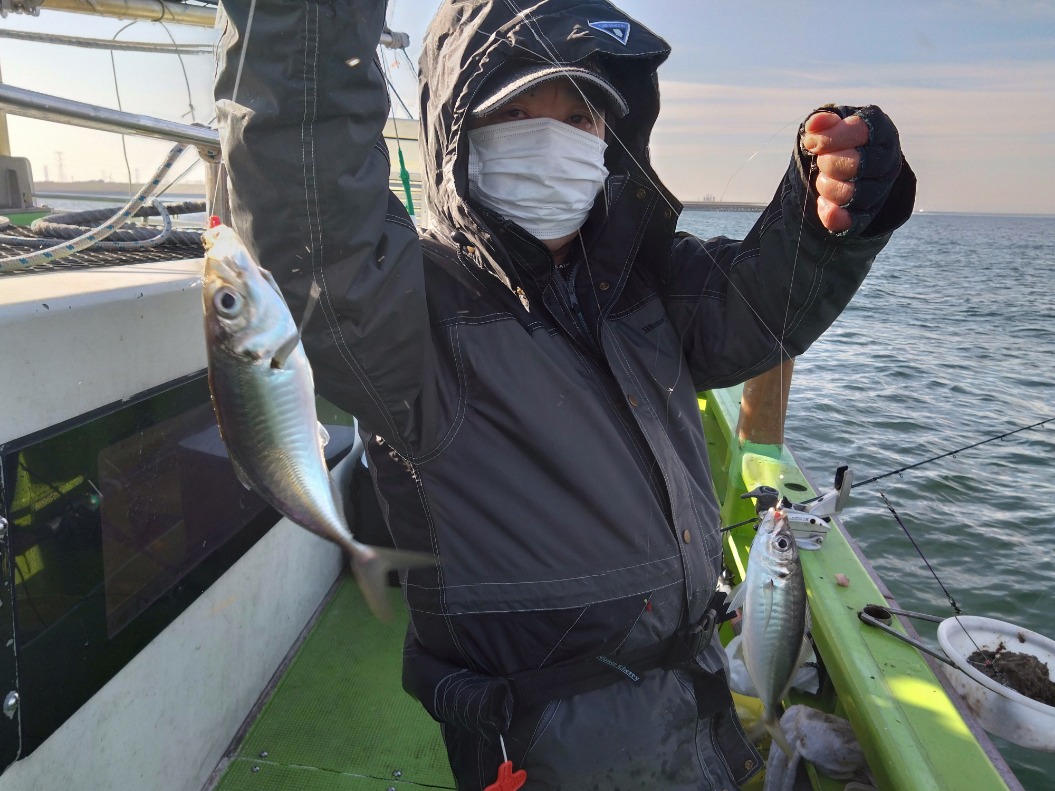 【マアジ船】 マアジ 大きさ 17~25㎝ 数 38~95匹 竿頭 墨田区 衛藤 ルカさん 今日も木更津沖からスタート。昨日良かったポイントから開始!コマセが効いてくると好調にHITしましたが、徐々にアタリが遠のきポイントを移動。なかなかハマれず転々と捜索ののちようやくいい反応に遭遇!20cm超のサイズメインに活発な食いっぷりに!手慣れた方はダブル・トリプルと入れ食い状態になり忙しい感じに!今日も大漁でした!