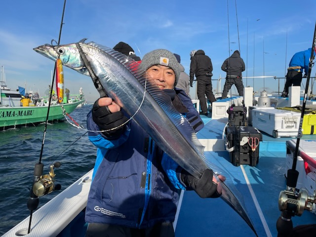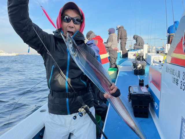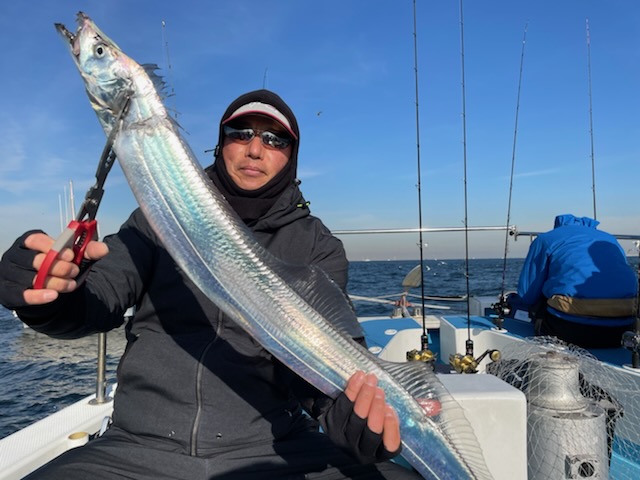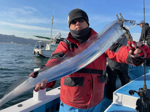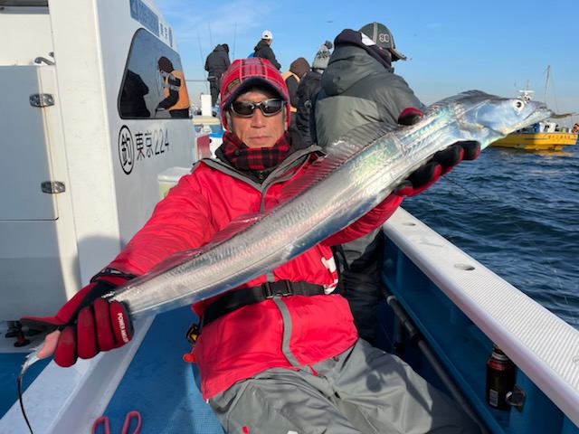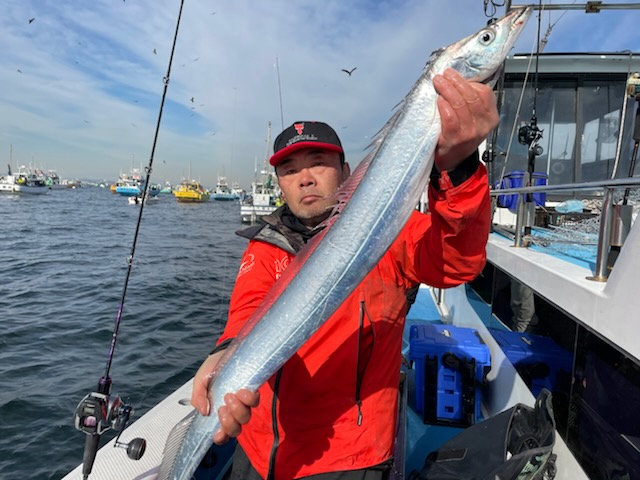 【タチウオ船】 タチウオ 大きさ 80~116㎝ 数 8~32匹 竿頭 八王子市 小山 隼平さん 今日は朝から走水沖に直行!早々から巨大な反応が出ており、ジグを落とすとポツポツと好調な滑り出し!アタリっぷりも素直な感じで、巻き上げ時にもバンバンとHIT!途中、下げ潮が流れてくるとやり辛い時間帯もありましたが、下げ潮が緩んでくるとまたまた活発に!極太サイズも多々HIT!天気も良く楽しめました!